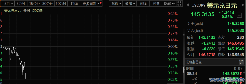 与此同时,日元再度狂拉,美元兑日元跌至145附近。日本国债期货触发熔断机制。